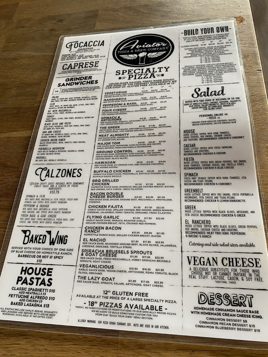 Welcome to Aviator Pizza & Brew Company, nestled in Elgin, Texas, where culinary creativity meets a laid-back atmosphere. Their menu is a flight of flavors, offering authentic Italian pizza crafted with premium ingredients. Highlights include the Harvest Pizza, a delightful blend of spinach, onions, and feta on a thin crust, and a range of calzones like the Pepperoni & Sausage that promises a savory punch.